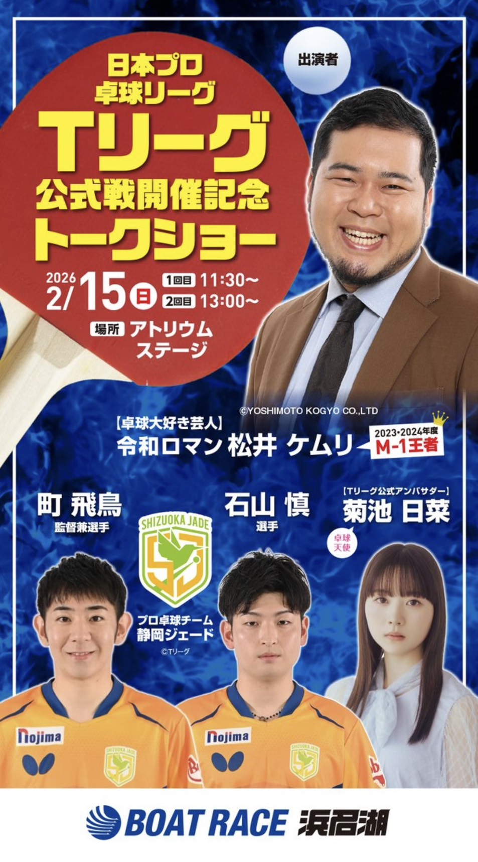 Tリーグ公式戦開催を記念しボートレース浜名湖にてトークショーを開催いたします。